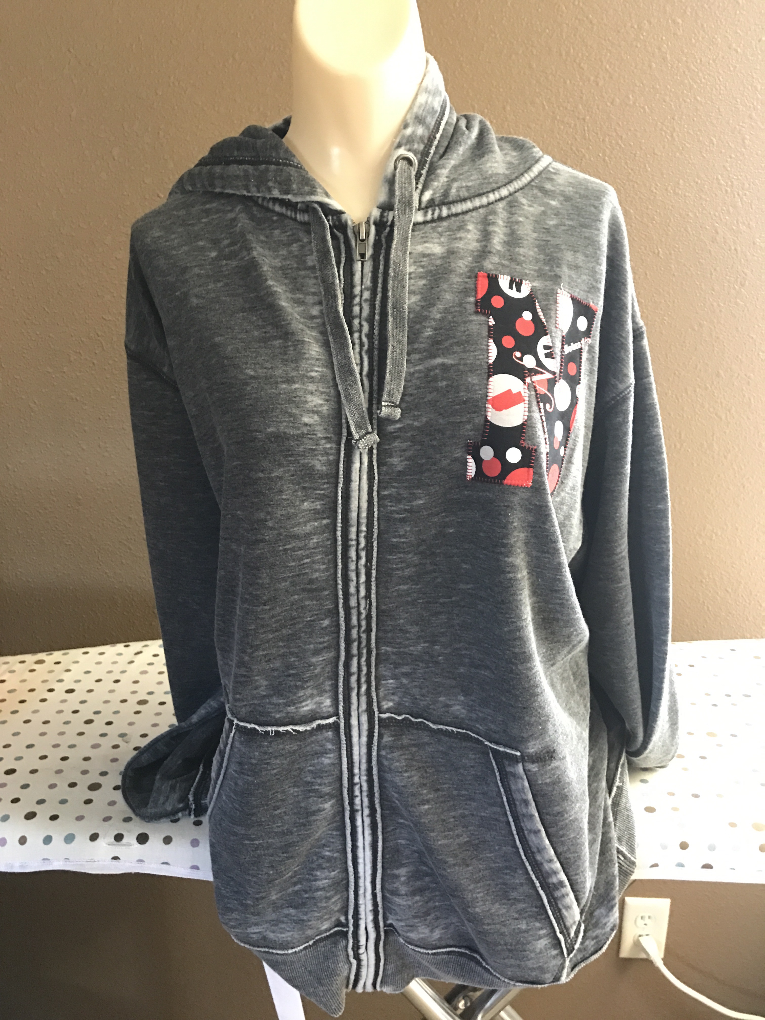 Hooded vintage gray zip sweatshirt jacket$40.